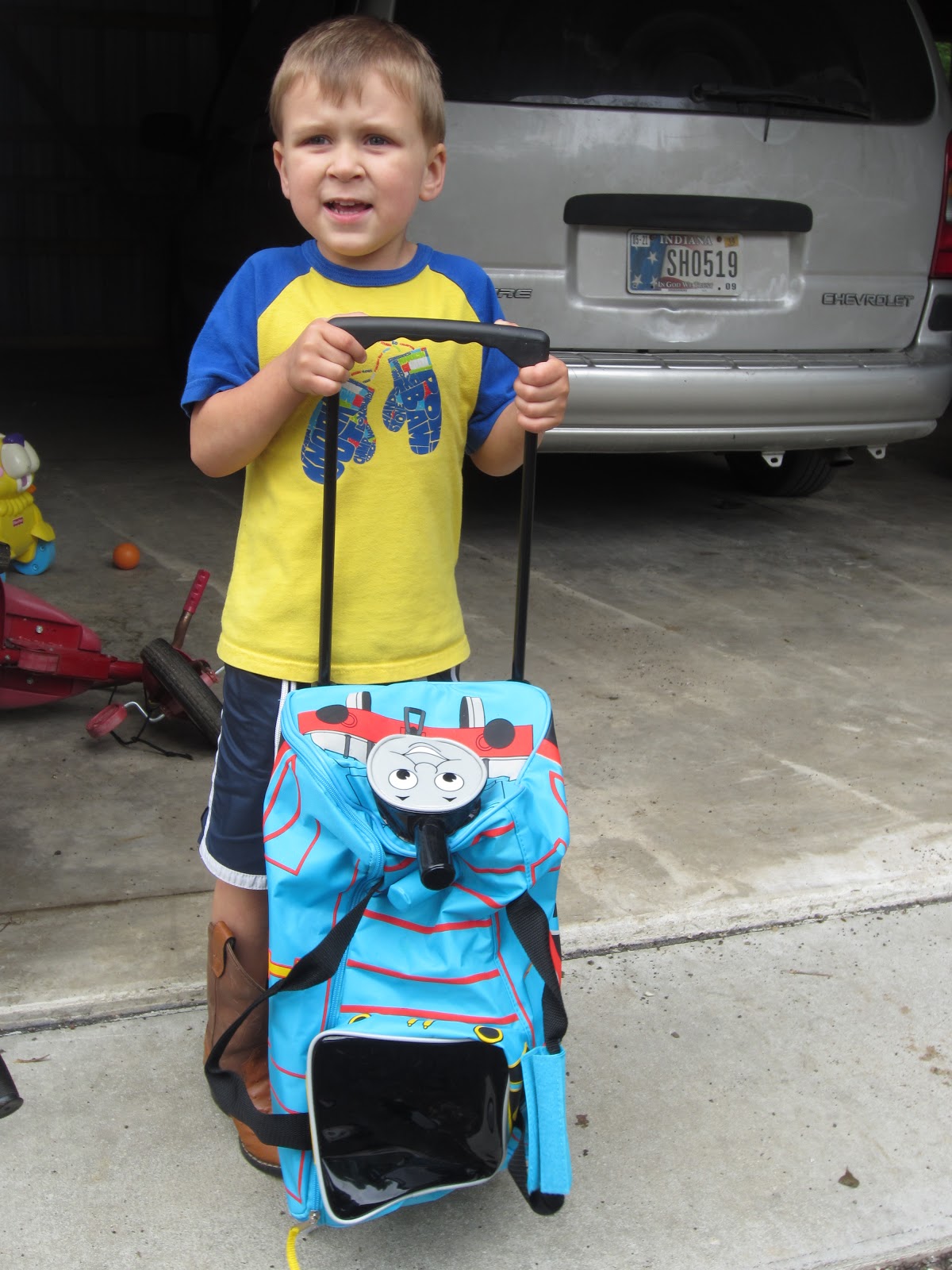 Owen made plans to spend the night at Mimi and Papa's. He was SO excited to go on an overnight by himself, he couldn't take his nap that afternoon. When Lilly caught wind of the news, she looked lost. How would life be without her big brother around? So we made arrangements for her to spend the night at Grammie and Papa's. She was super excited and immediately went to "pack" and put her hat on. Here she is all ready to go. Only the bare necessities, of course.